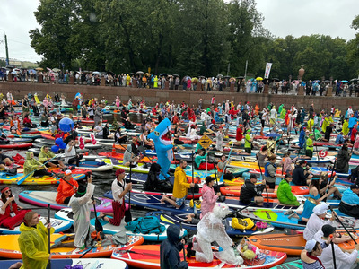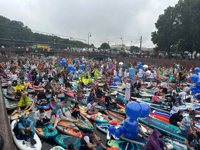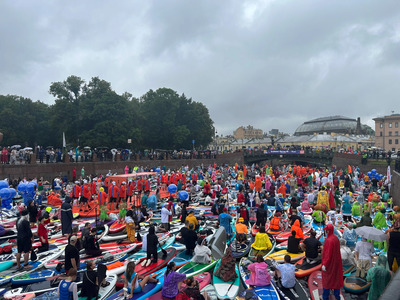 The festival opened with a vibrant water show: the extreme sports team CRAZY ZEBRA performed trampoline acrobatics right on the water — a spectacle hard to forget. On the embankment, visitors enjoyed live music, workshops, food courts, and relaxing zones. Organizers emphasize that Fontanka-SUP is not a race, but above all, a unifying celebration. People of all ages take part — the youngest participant this year was 18, and the oldest, 73. The average age of a SUP-surfer is 37.